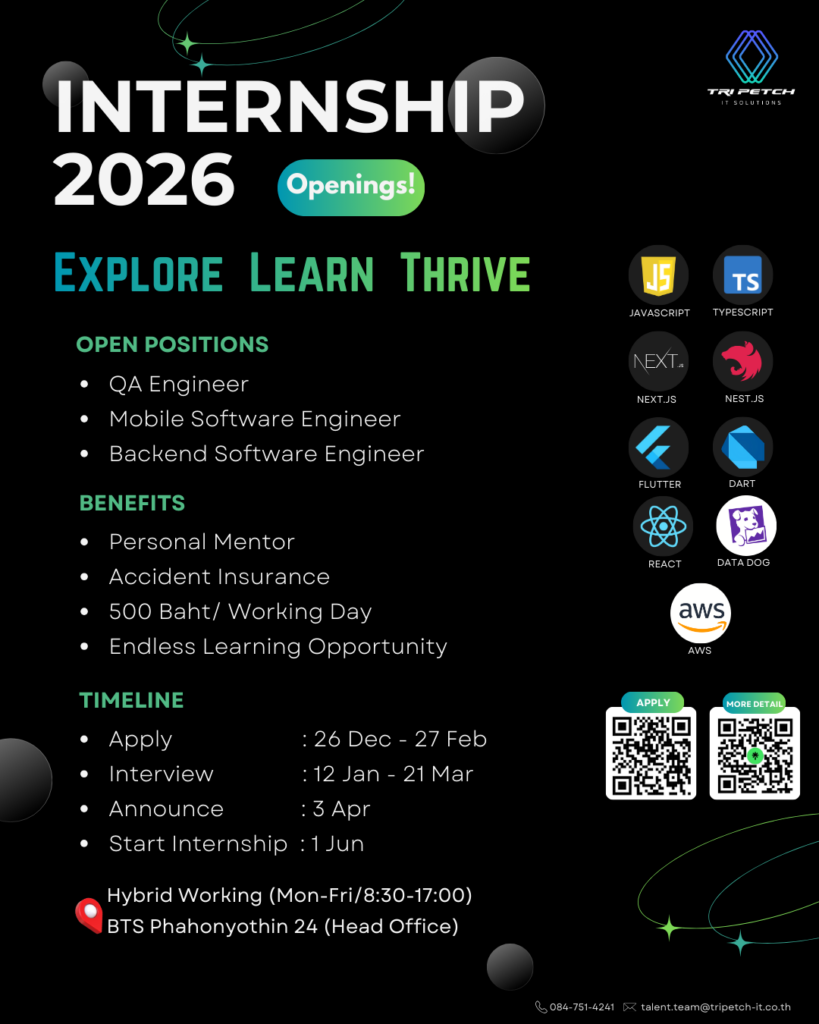 บริษัท ตรีเพชรไอทีโซลูชั่นส์ จำกัด มีความประสงค์ในการรับนักศึกษาฝึกงานและนักศึกษาสหกิจ ประจำปี 2569