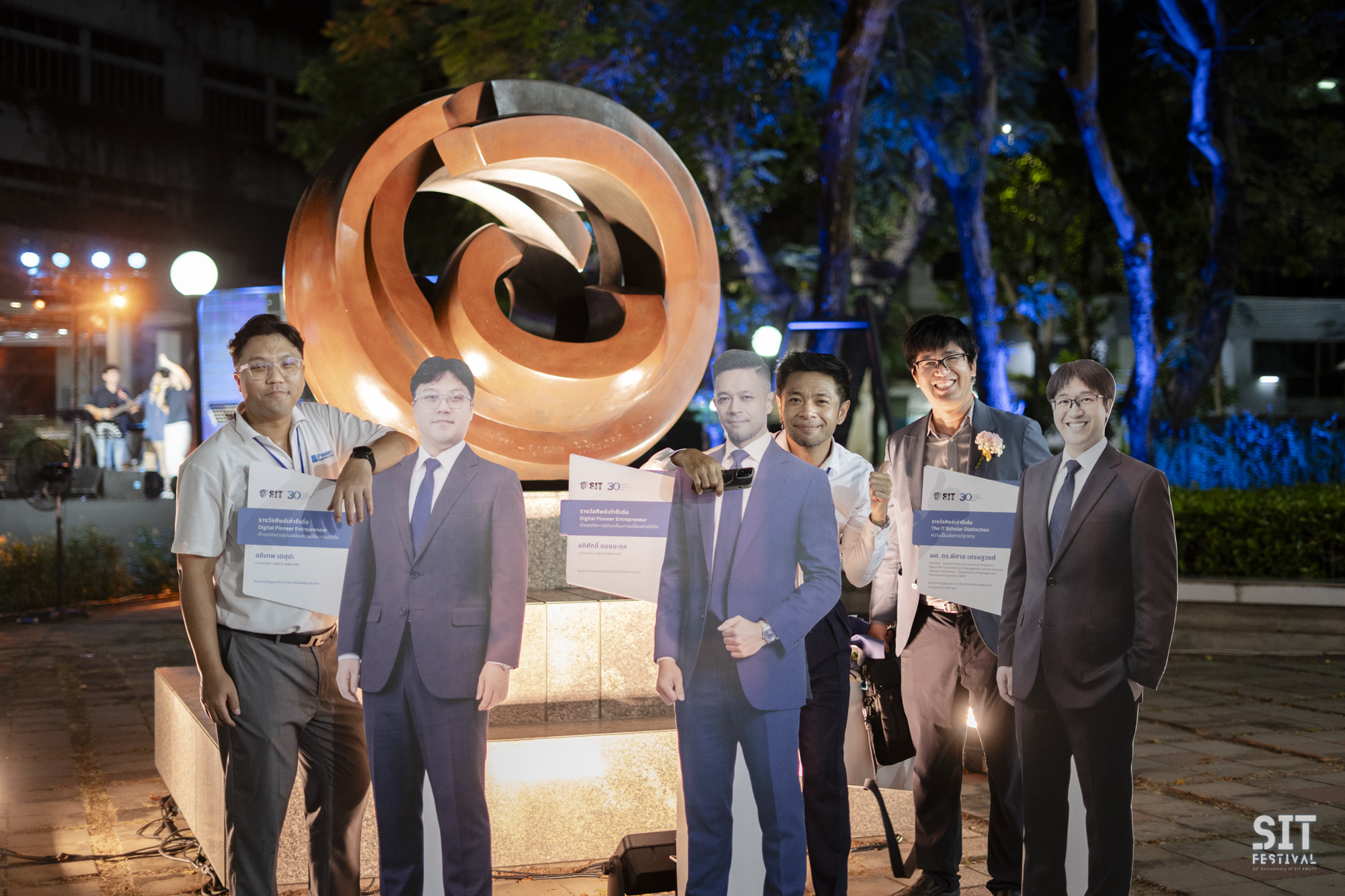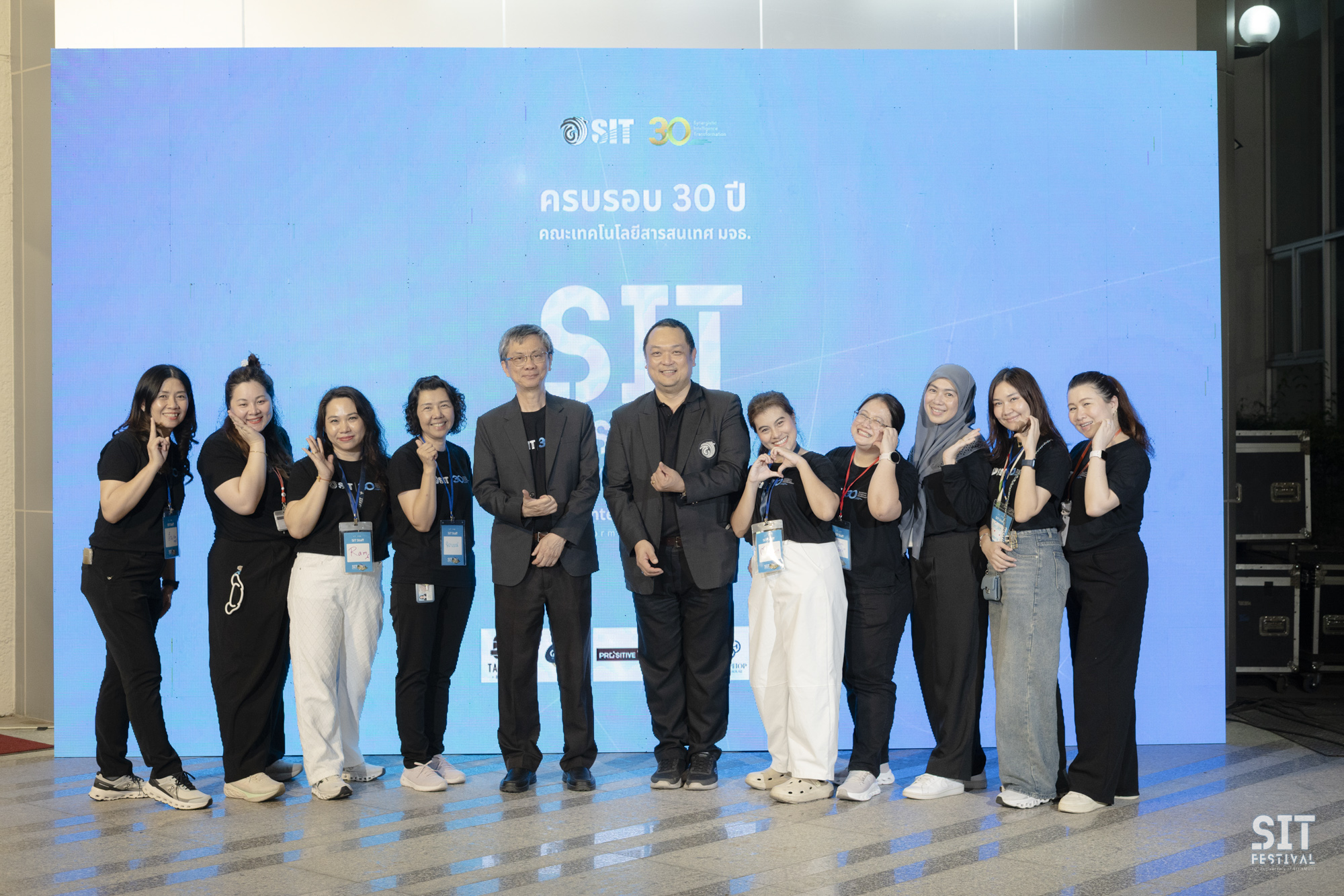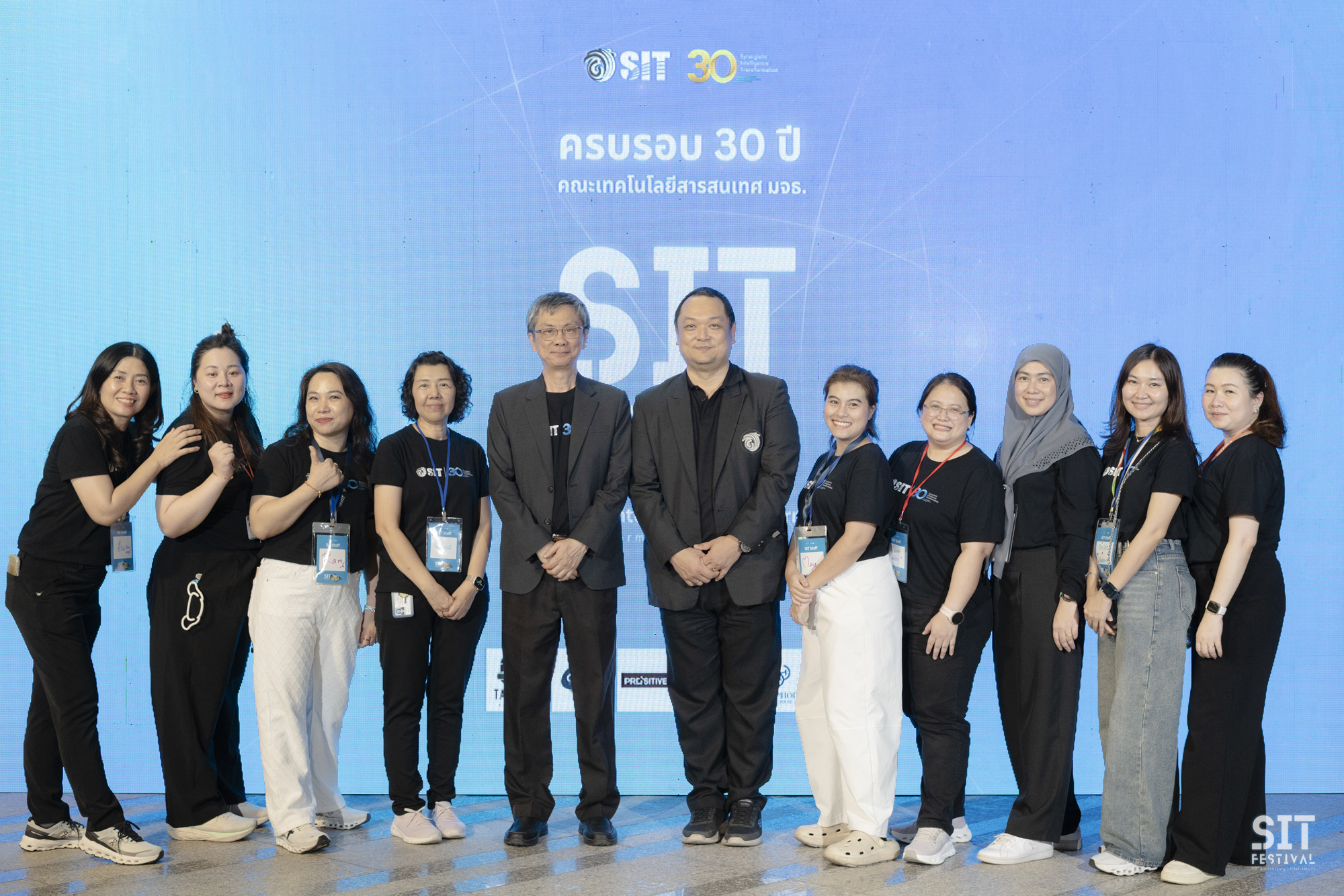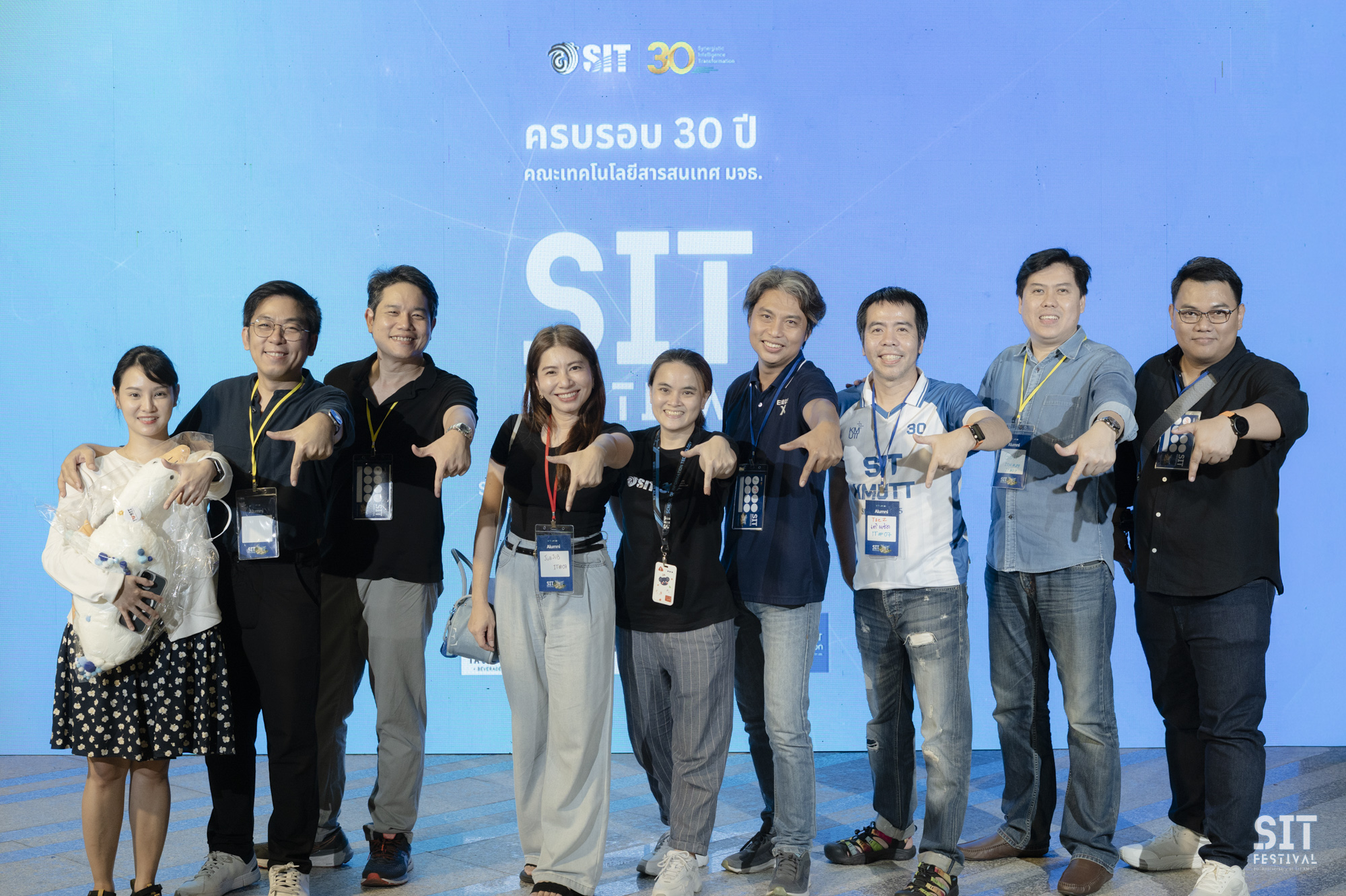 วันที่ 1 มีนาคม 2569 คณะเทคโนโลยีสารสนเทศ มจธ. จัดงาน SIT Festรival กิจกรรมเฉลิมฉลองครบรอบ 30 ปีแห่งการก่อตั้งคณะฯ อย่างยิ่งใหญ่ ในพื้นที่หน้า SIT ให้การต้อนรับศิษย์เก่าที่กลับมาบ้านหลังที่ 2 อย่างอบอุ่น โดยเป็นศิษย์เก่า และนักศึกษาปัจจุบัน SIT เข้าร่วมกว่า 700 คน โดยได้รับเกียรติจาก รศ. ดร.สุวิทย์ แซ่เตีย อธิการบดี มจธ. เป็นประธานเปิดงาน พร้อมด้วยศิษย์เก่าและศิษย์ปัจจุบันที่มาร่วมงานกันอย่างคับคั่ง บรรยากาศภายในงานเต็มไปด้วยความอบอุ่นและมิตรภาพ จากรากฐานที่แข็งแกร่ง สู่วิสัยทัศน์แห่งทศวรรษใหม่ หนึ่งในโมเมนต์ประทับใจของค่ำคืนนี้ คือการบอกเล่าเรื่องราวการก่อตั้งคณะจาก รศ. ดร.บวร ปภัสราทร คณบดีท่านแรกของ SIT ที่ทำให้เห็นความมุ่งมั่นตั้งแต่จุดเริ่มต้น ก่อนจะส่งไม้ต่อให้กับ ผศ. ดร.ณรงค์ฤทธิ์ วราภรณ์ คณบดีคนปัจจุบัน ที่ได้ร่วมแถลงวิสัยทัศน์พร้อมนำทีมบริหารประกาศเจตนารมณ์ในการพา SIT ก้าวต่อไปอย่างไม่หยุดยั้ง เพื่อเป็นผู้นำด้านเทคโนโลยีดิจิทัลในระดับสากล และก้าวต่อไปในฐานะสถาบันหลักที่มุ่งเน้นการ “สร้างคน” เพื่อขับเคลื่อนเทคโนโลยีดิจิทัลของประเทศไทยอย่างยั่งยืน พร้อมพิธีมอบรางวัลเชิดชูเกียรติ “ศิษย์เก่าดีเด่น” รวม 39 ท่าน ใน 6 สาขา ผู้เป็นฟันเฟืองสำคัญของอุตสาหกรรมไอที