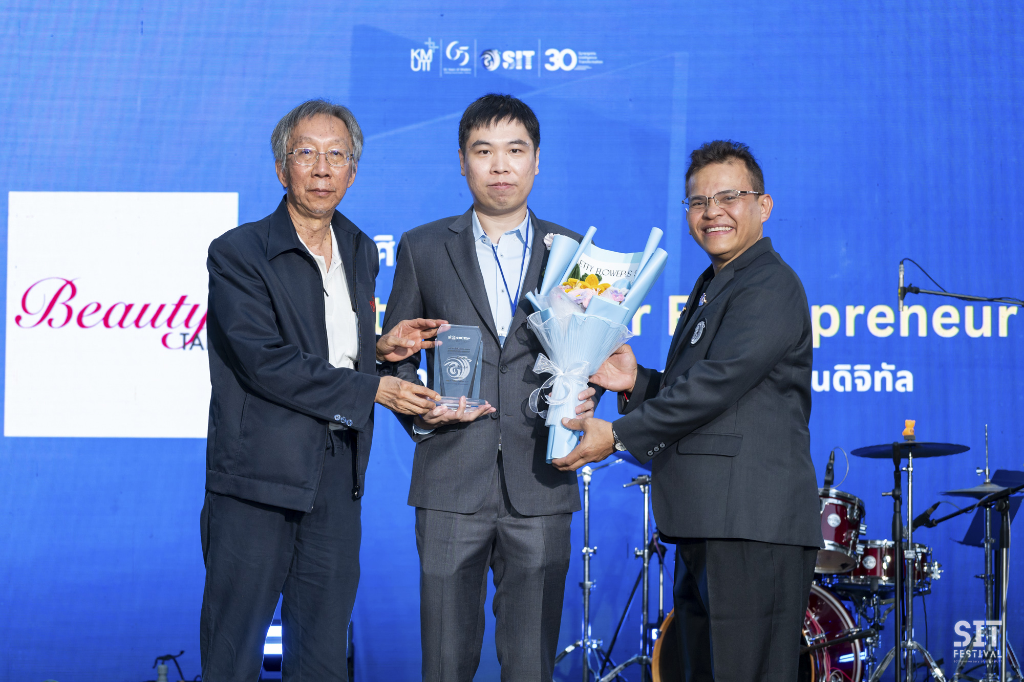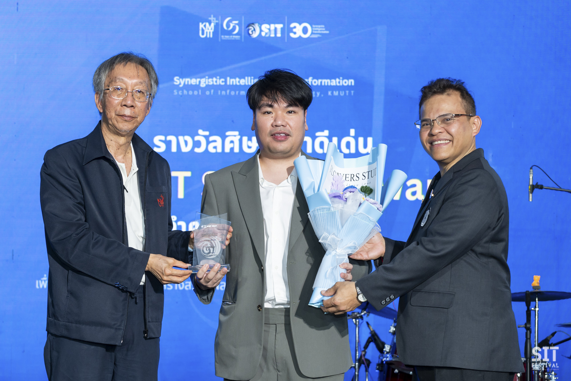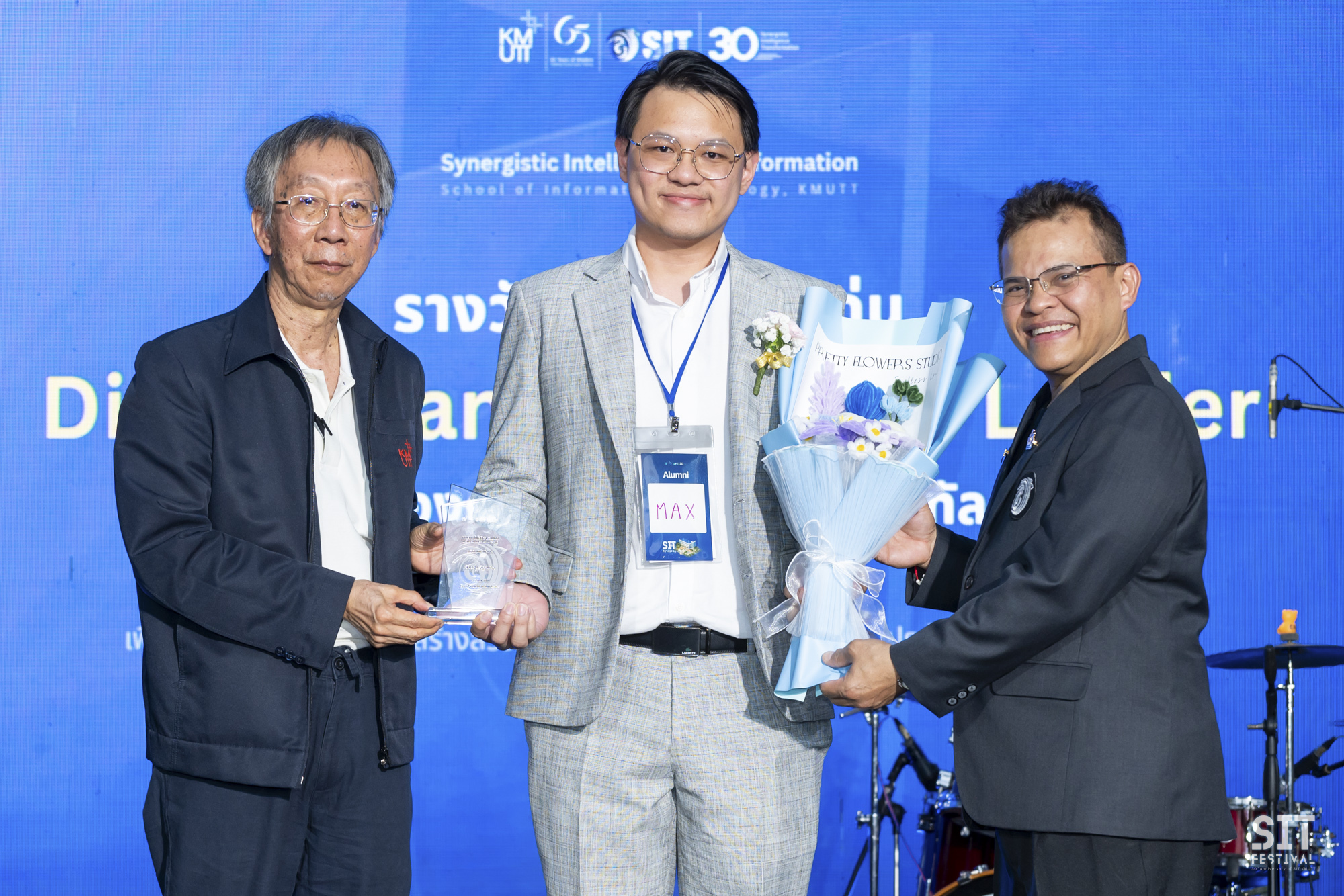 คณะเทคโนโลยีสารสนเทศ (SIT) มหาวิทยาลัยเทคโนโลยีพระจอมเกล้าธนบุรี (มจธ.) จัดพิธีมอบรางวัลศิษย์เก่าดีเด่น ภายในงาน SIT Festival เมื่อค่ำคืนวันที่ 1 มีนาคม 2569 ณ คณะเทคโนโลยีสารสนเทศ เพื่อร่วมเฉลิมฉลองในโอกาสครบรอบ 30 ปีแห่งการก่อตั้งคณะฯ และเพื่อแสดงความขอบคุณพร้อมเชิดชูเกียรติศิษย์เก่าผู้ประสบความสำเร็จและสร้างชื่อเสียงในระดับประเทศและสากล พิธีมอบรางวัลในครั้งนี้เป็นการเชิดชูเกียรติศิษย์เก่าผู้เป็นต้นแบบในหลากหลายมิติ ซึ่งสะท้อนถึงปณิธานของคณะในการผลิตบุคลากรไอทีคุณภาพสู่สังคม ได้รับเกียรติจาก รองศาสตราจารย์ ดร.สุวิทย์ แซ่เตีย อธิการบดี มจธ. พร้อมด้วย ผู้ช่วยศาสตราจารย์ ดร.ณรงค์ฤทธิ์ วราภรณ์ คณบดีคณะเทคโนโลยีสารสนเทศ ร่วมเป็นผู้มอบโล่เกียรติยศให้แก่ศิษย์เก่าดีเด่น ซึ่งเป็นฟันเฟืองสำคัญในการสร้างความเปลี่ยนแปลงให้กับภาคธุรกิจ สังคม และวิชาการ รวมทั้งสิ้น 39 ท่าน โดยแบ่งตามประเภทรางวัลดังนี้
