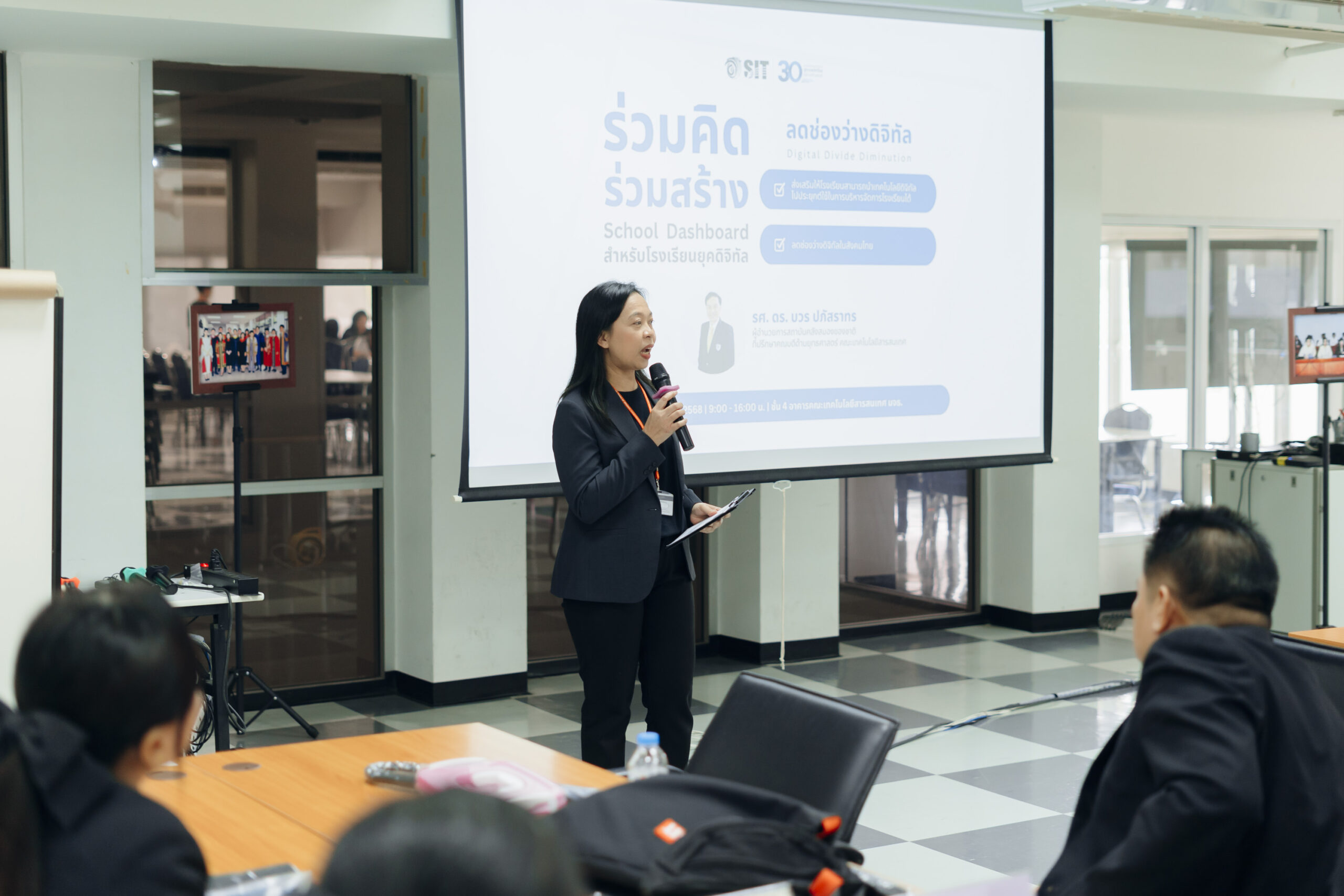 ในยุคของการเปลี่ยนผ่านสู่สังคมดิจิทัล (Digital Era) คณะเทคโนโลยีสารสนเทศ (SIT) มหาวิทยาลัยเทคโนโลยีพระจอมเกล้าธนบุรี ได้เล็งเห็นถึงความสำคัญของผู้อำนวยการโรงเรียนในฐานะผู้นำการเปลี่ยนแปลงที่ต้องขับเคลื่อนการปฏิรูปการศึกษาด้วยเทคโนโลยีดิจิทัล ในโอกาสที่คณะฯ ก้าวเข้าสู่ปีที่ 30 ของการดำเนินงาน คณะทำงานกิจกรรมชุมชนจึงได้สานต่อพันธกิจในการ ลดช่องว่างทางดิจิทัลอย่างต่อเนื่อง โดยได้จัดโครงการอบรมเชิงปฏิบัติการ “ร่วมคิด ร่วมสร้าง School Dashboard สำหรับโรงเรียนยุคดิจิทัล” ขึ้น ในวันที่ 27 ตุลาคม 2568 ณ อาคารคณะเทคโนโลยีสารสนเทศ มจธ.