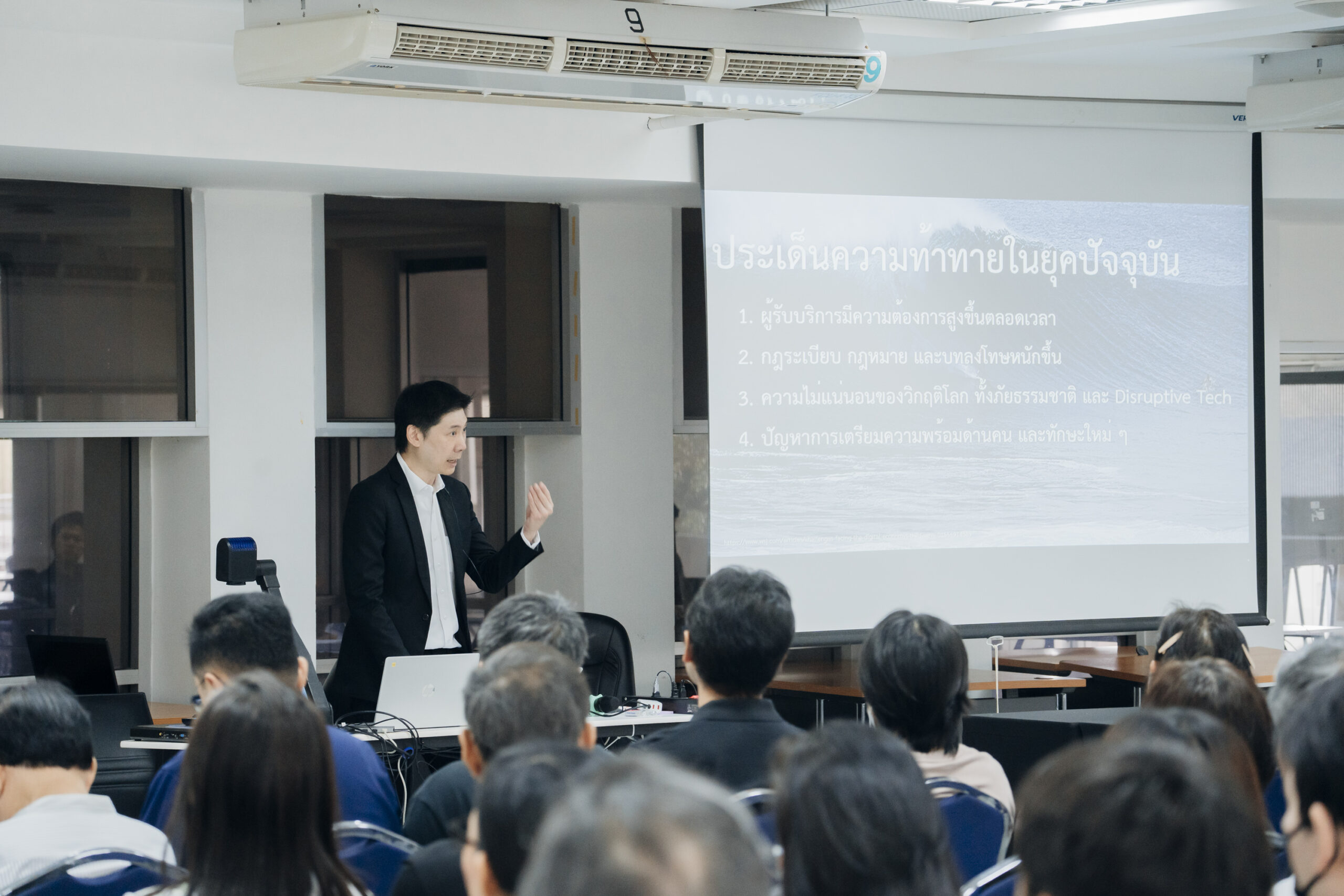 คณะเทคโนโลยีสารสนเทศ (SIT) มหาวิทยาลัยเทคโนโลยีพระจอมเกล้าธนบุรี (มจธ.) ประสบความสำเร็จในการจัดงานสัมมนาหัวข้อ “การพัฒนาองค์กรในยุคปัญญาประดิษฐ์ จากยุทธศาสตร์สู่การปฏิบัติอย่างมีแบบแผนและเป็นระบบ” เมื่อวันเสาร์ที่ 21 มีนาคม 2569 ณ อาคารคณะ SIT มจธ. (บางมด) โดยได้รับความสนใจจากผู้บริหารและที่ปรึกษาด้านการพัฒนาองค์กรเข้าร่วมกว่า 180 ท่าน เจาะลึกกลยุทธ์ AI Blueprint เพื่อองค์กรยุคใหม่ ไฮไลต์สำคัญของงานอยู่ที่การถ่ายทอดองค์ความรู้เชิงบริหารแบบเจาะลึกโดย คุณดนัยรัฐ ธนบดีธรรมจารี วิทยากรผู้เชี่ยวชาญ ซึ่งเป็นศิษย์เก่าคณะเทคโนโลยีสารสนเทศ ที่มาร่วมเผยเคล็ดลับการวางรากฐานองค์กรผ่าน 3 แกนหลัก