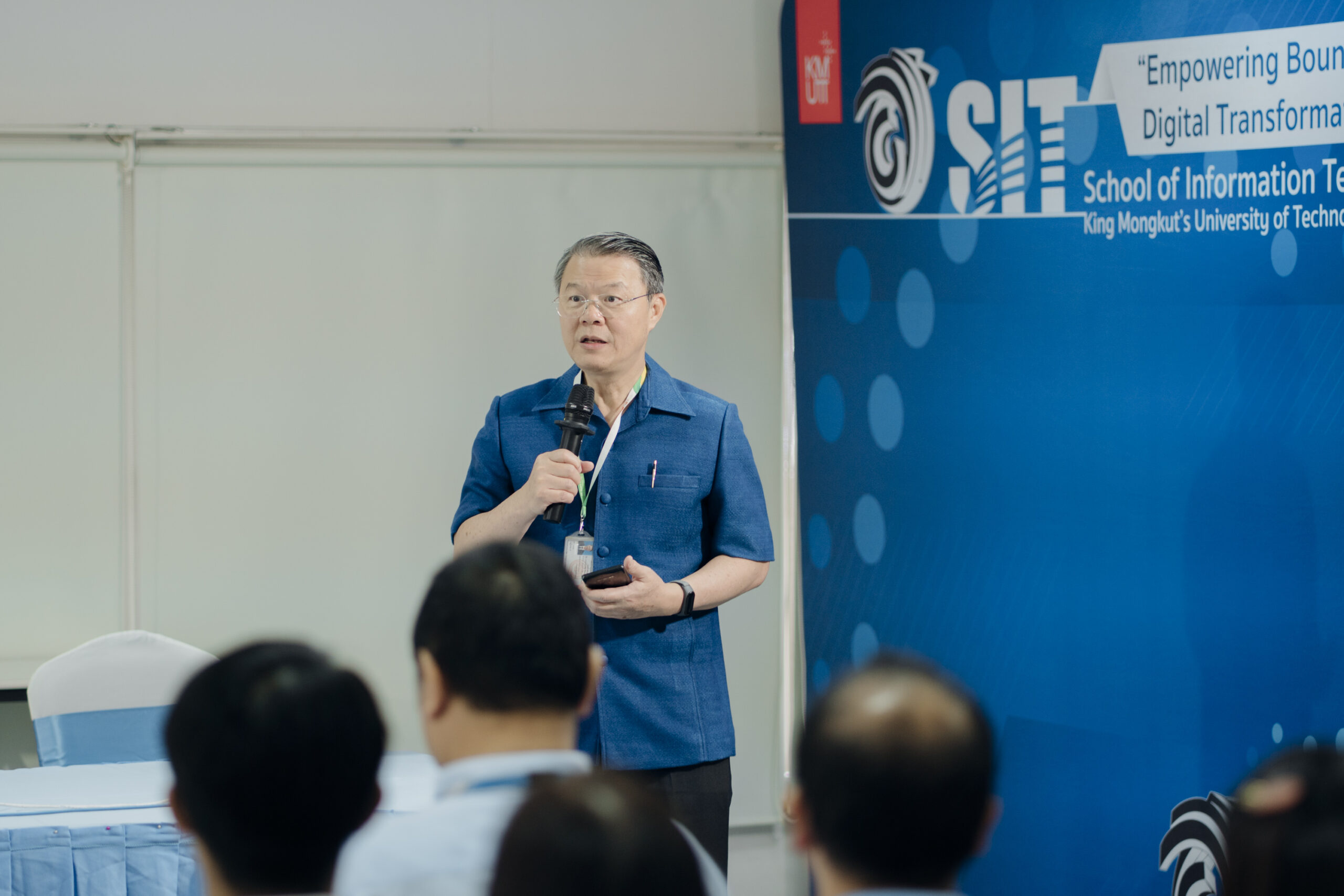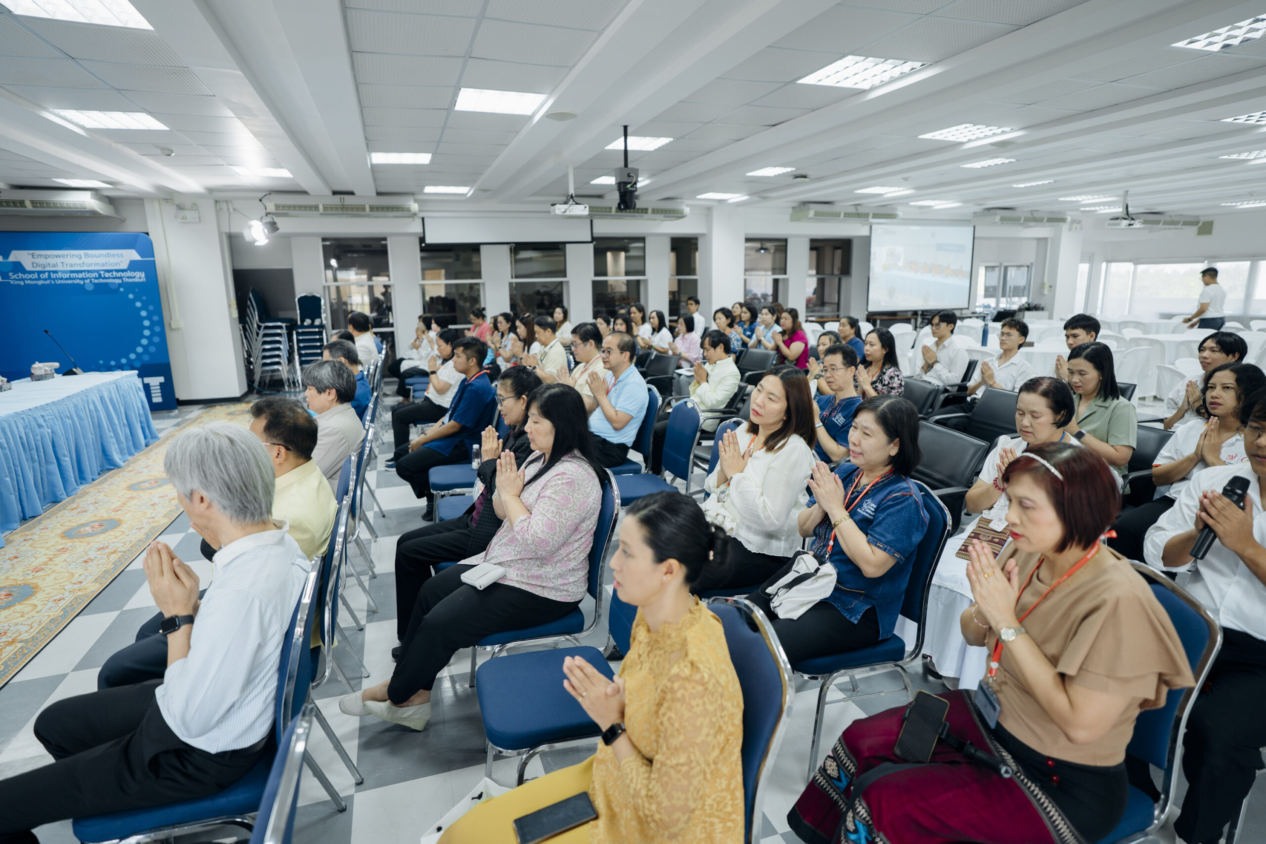 คณะเทคโนโลยีสารสนเทศ (SIT) มหาวิทยาลัยเทคโนโลยีพระจอมเกล้าธนบุรี (มจธ.) ได้จัดพิธีทำบุญคณะฯ เนื่องในโอกาสสำคัญ ครบรอบ 30 ปี แห่งการพลิกโฉมอย่างสร้างสรรค์ (Synergistic Intelligence Transformation) เมื่อวันศุกร์ที่ 24 ตุลาคม 2568 โดยมี ผู้บริหาร อาจารย์ และพนักงานของคณะฯ เข้าร่วมอย่างพร้อมเพรียงกันในชุดผ้าไทย/ผ้าพื้นเมือง พิธีในช่วงเช้าเริ่มต้นด้วยการทำบุญตักบาตรพระสงฆ์จำนวน 30 รูป บริเวณหน้าคณะฯ ตามด้วยพิธีทางศาสนาอิสลาม การสักการะสิ่งศักดิ์สิทธิ์ และพิธีทางศาสนาพุทธเพื่อความเป็นสิริมงคล หัวใจสำคัญของงานในช่วงเช้าคือการจัดเสวนาในหัวข้อ “AI Transformation in Higher Education: Sci -Tech” ซึ่งเป็นการตอกย้ำความพร้อมของ SIT ในการขับเคลื่อนนวัตกรรมและวิสัยทัศน์ Sci-Tech เพื่อรับมือกับการเปลี่ยนแปลงด้าน AI และยังคงเป็นผู้นำด้านเทคโนโลยีสารสนเทศของประเทศ การเสวนาครั้งนี้เปิดโอกาสให้ผู้ฟังได้แสดงความคิดเห็นในช่วงท้าย เพื่อร่วมกันกำหนดทิศทางการศึกษาของ มจธ. ให้สามารถผลิตบุคลากรที่มีคุณภาพและมีความเชี่ยวชาญด้านเทคโนโลยีอย่างสร้างสรรค์