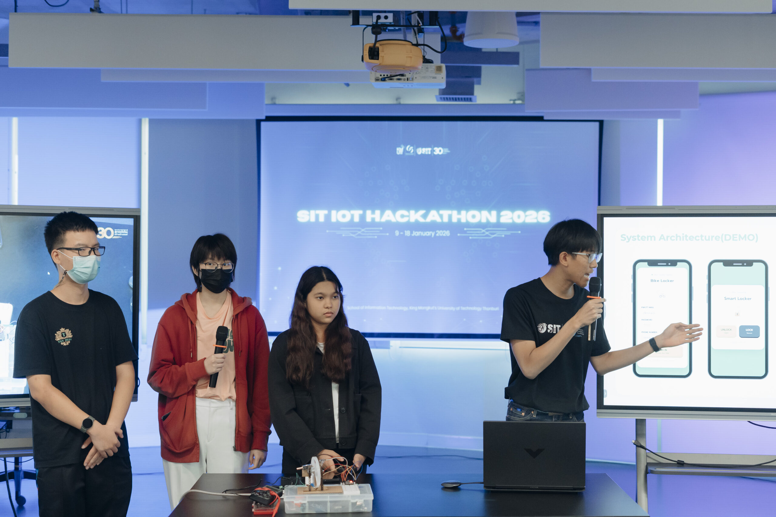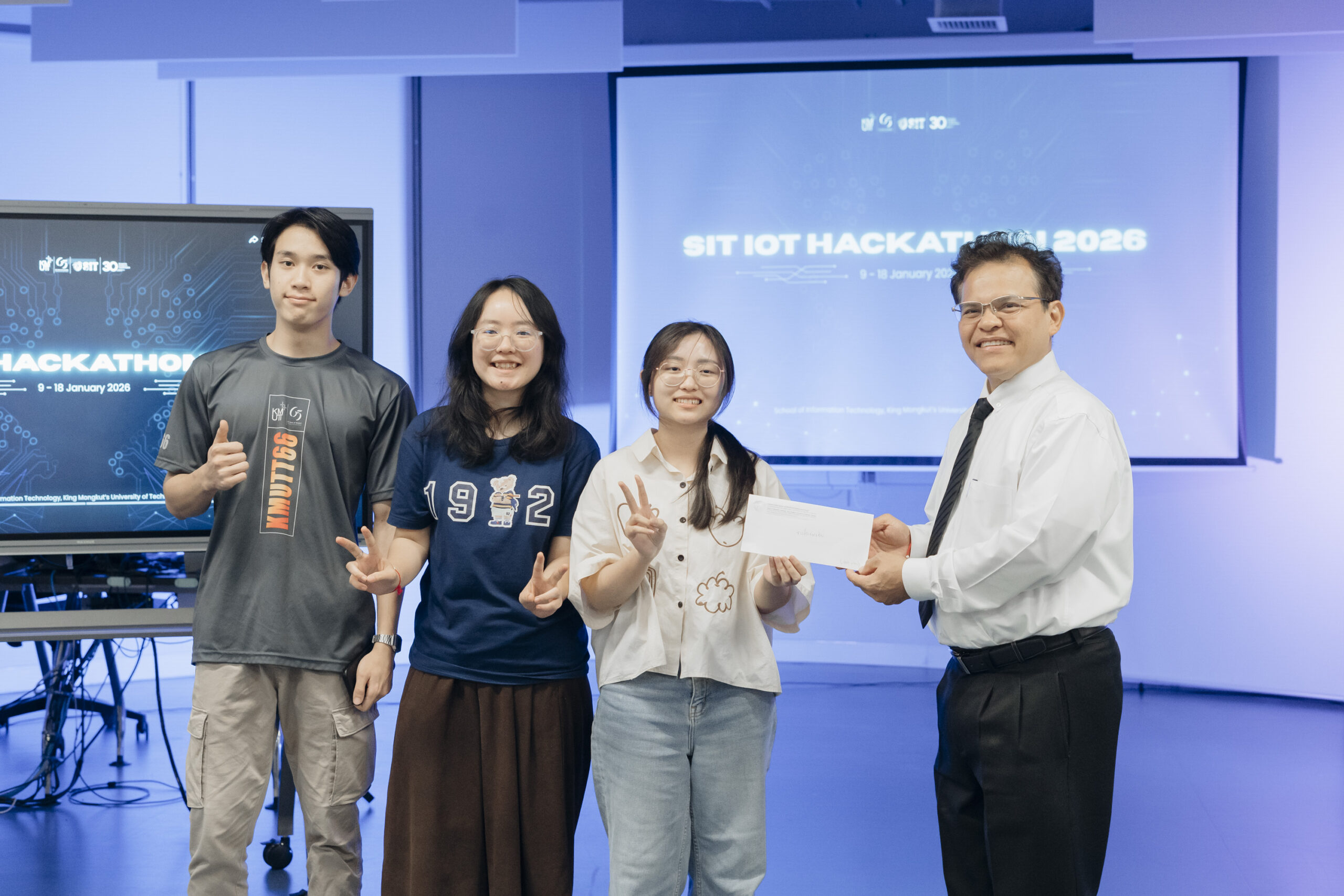 The School of Information Technology (SIT), KMUTT, organized the “SIT IoT Hackathon 2026” from January 8-18, 2026. This event provided a dynamic platform for students in IT, CS, and DSI to transcend classroom boundaries and create hands-on innovations using Internet of Things (IoT) technology to solve real challenges within the faculty premises.