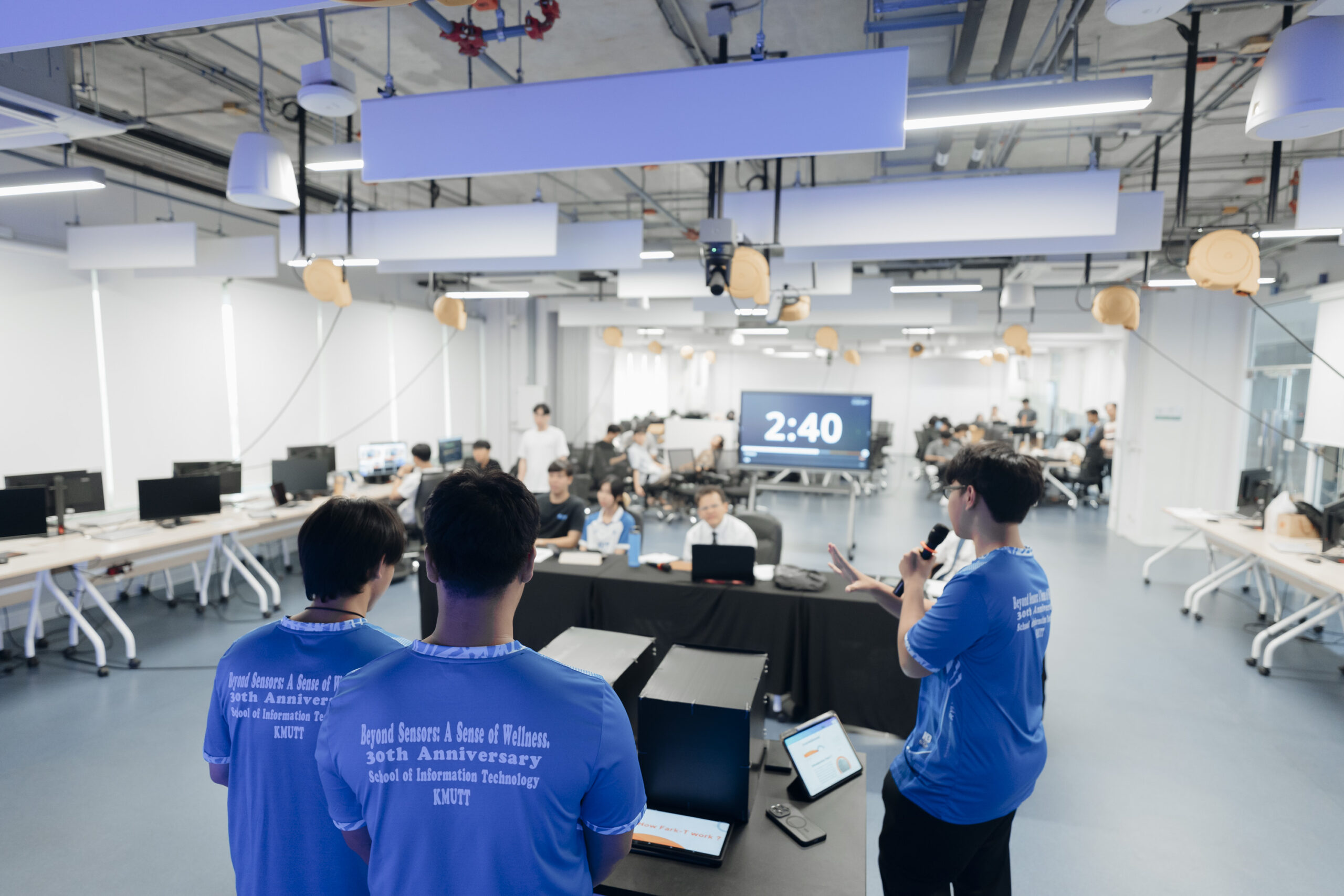 คณะเทคโนโลยีสารสนเทศ (SIT) มจธ. จัดโครงกิจกรรม “SIT IoT Hackathon 2026” ระหว่างวันที่ 8 – 18 มกราคม 2569 เพื่อเปิดพื้นที่ให้นักศึกษาสาขาวิชา IT, CS และ DSI ได้ก้าวข้ามขีดจำกัดจากการเรียนในห้องเรียน สู่การลงมือสร้างสรรค์นวัตกรรมด้วยเทคโนโลยี Internet of Things (IoT) ที่สามารถตอบโจทย์และแก้ปัญหาการใช้งานจริงภายในพื้นที่ของคณะ กิจกรรมนี้มุ่งเน้นให้นักศึกษาได้สำรวจความต้องการและพัฒนาต้นแบบนวัตกรรม (Prototype) ที่มีความหมายต่อผู้ใช้งานในคณะ โดยผ่านกระบวนการคิดเชิงวิพากษ์และการทำงานเป็นทีม จนเกิดเป็นผลงานที่จับต้องได้
